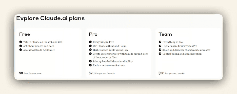 • Flexible Pricing: Users can choose between different versions of Claude, with varying costs and features.