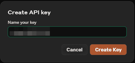 3. Give your key a descriptive name (e.g. "Development testing", "Production chatbot") and select the appropriate environment from the dropdown