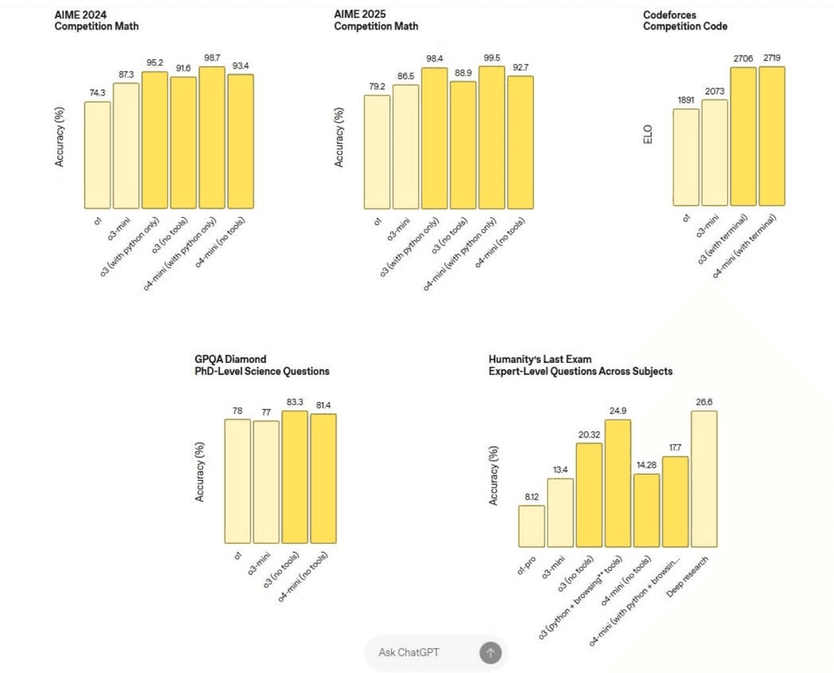 - Multimodal Capabilities: Like o3, it can understand and reason about visual inputs (images, charts) alongside text.
