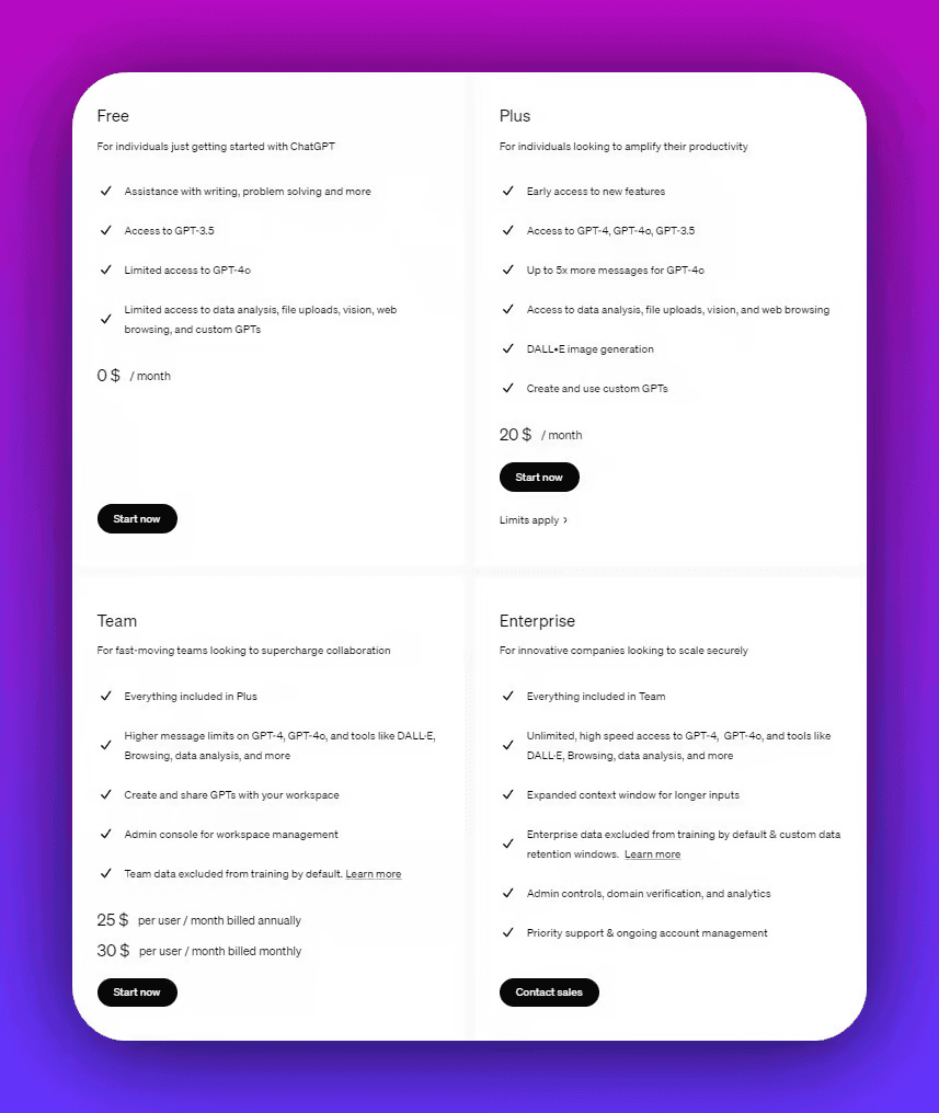 GPT-4o's pricing model aims to balance accessibility and sustainability, offering both free and paid tiers to cater to a broad range of users. The free tier allows anyone with a ChatGPT account to use GPT-4o for basic tasks, such as answering questions and generating text, with certain limitations on usage to ensure fair access. For more advanced features and higher usage limits, OpenAI offers paid subscriptions starting at $20 per month, providing benefits like faster response times, priority access to new features, and API integration.