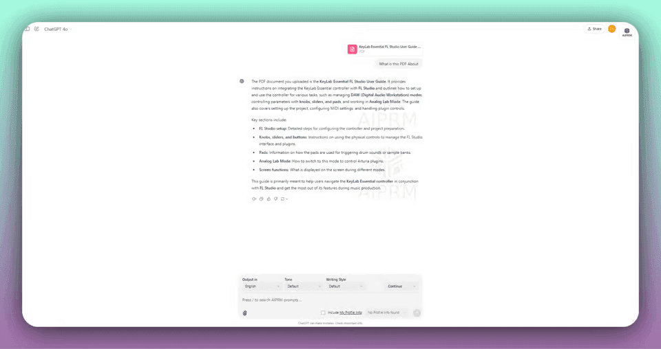 Utilize ChatGPT's capabilities to automatically extract and process text from PDF documents. This feature can be invaluable for businesses dealing with large volumes of documents, such as legal firms or research organizations. The AI can summarize key points, categorize information, or even translate content, saving hours of manual work and improving data accessibility.