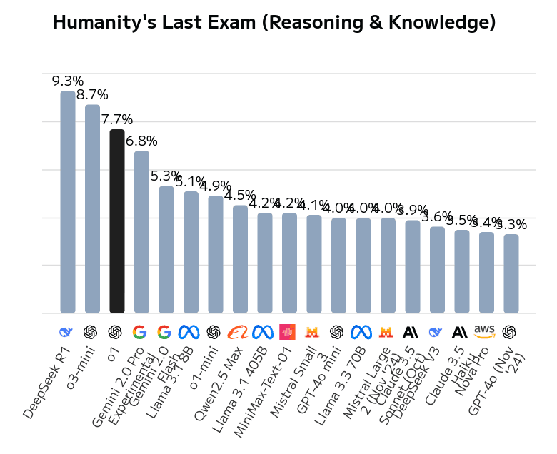 At the same time, DeepSeek beats all OpenAI’s models in the Humanity's Last Exam (HLE) benchmark, whose purpose is to test how well the AI solves academic problems. At 9.3% success rate, the model performs better than o3-mini and o1 that show 8.7% and 7.7%, respectively.