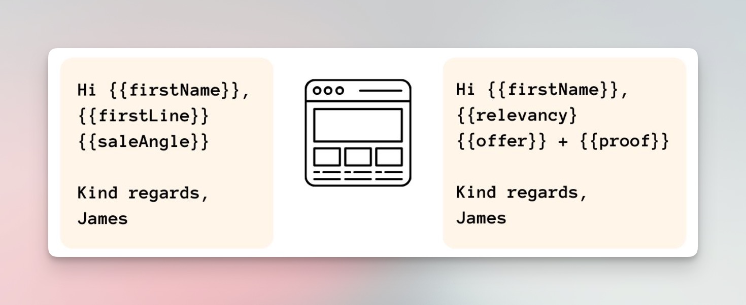 Cold email platforms now help solve this issue with dynamic variables that add a personalized touch to automated emails. These variables act as placeholders for inserting personalized words, lines, or paragraphs.