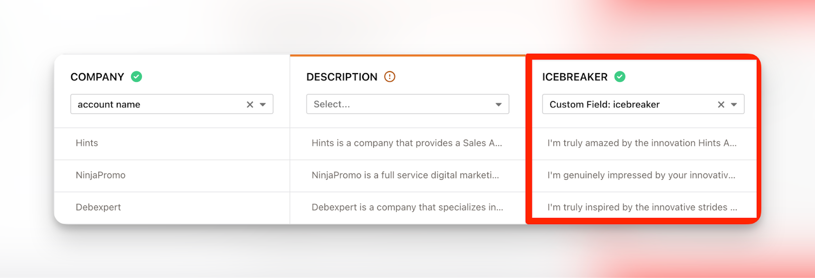 That's it. We've enriched our emails with essential details like the company description. Now, let's craft a personalized icebreaker to kick off our cold emails and establish a personal connection right from the start.