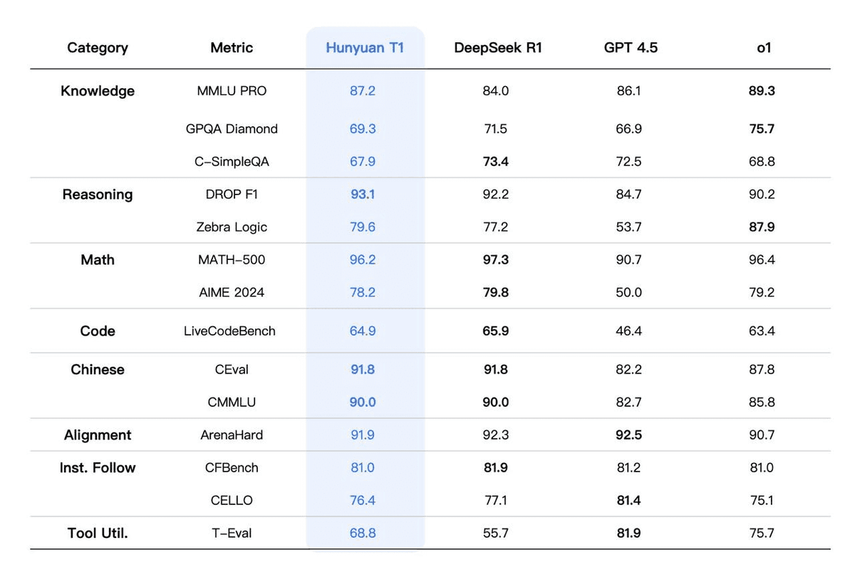 - In the AIME 2024 math test, Hunuyan T1 hit 78.2, which is on par with o1 and R1.