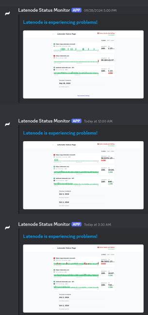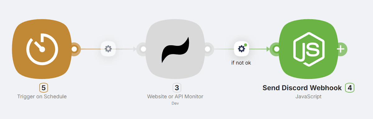 If the ‘All checks passing’ text is missing or the server returns a status outside the 200 range, the node will capture a screenshot of the page and trigger the next node — Send Discord Webhook. This sends a notification to your Discord channel with the attached screenshot, as demonstrated in the example screenshot: