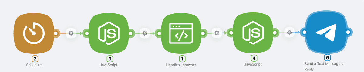 Given the above, on the Latenode platform, we can set up automatic brand mention tracking on social networks. We'll need 6 blocks and follow a simple linear sequence.