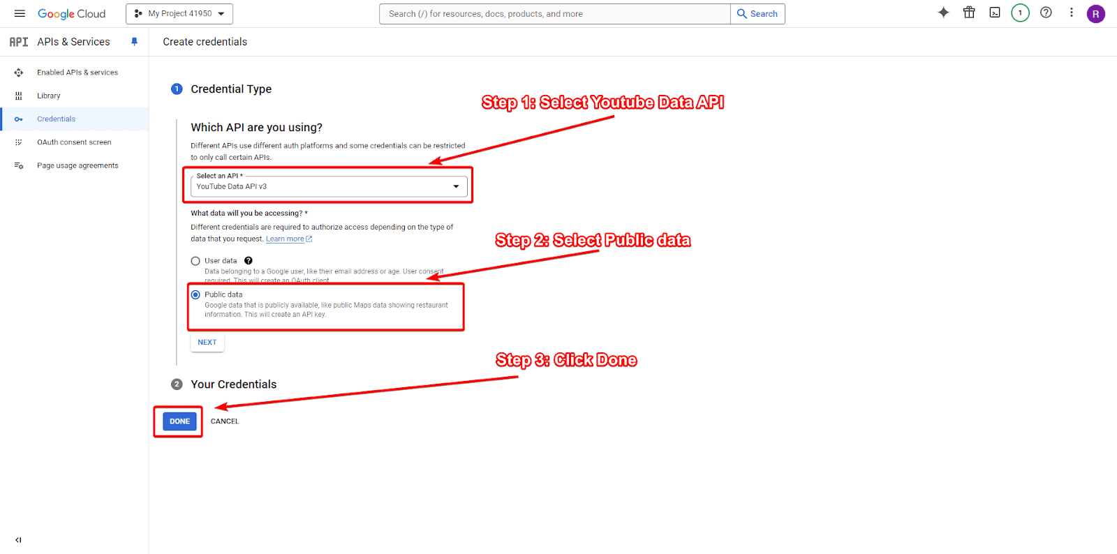 4. Create credentials