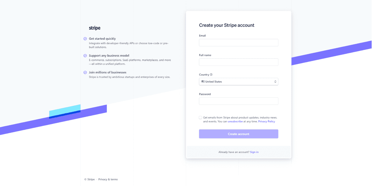 To get started with Stripe, you'll need to create a Stripe account. Visit the Stripe website (https://stripe.com) and sign up for an account. You'll be prompted to provide basic information about your business, such as your company name, contact details, and the type of products or services you offer. Once you complete the registration process, you'll have access to the Stripe Dashboard, which serves as your central hub for managing your Stripe integration.