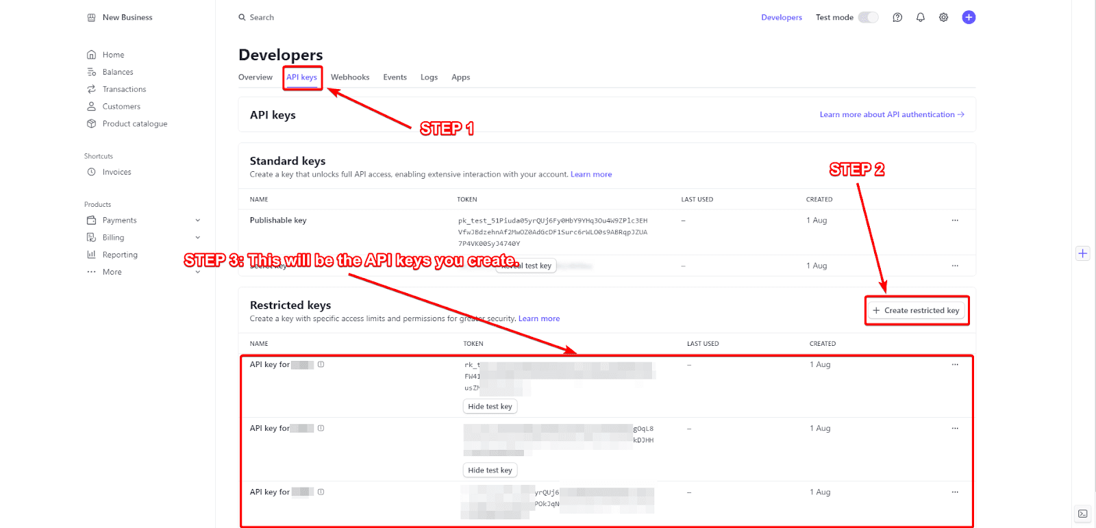 After creating your Stripe account, the next step is to obtain your API keys. API keys are essential for authenticating your requests to the Stripe API and ensuring secure communication between your application and Stripe's servers.