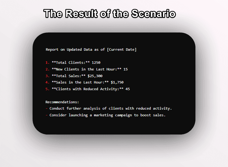 • Notification: Automatically generate and send a report or notification based on the updated data. This could be an email to stakeholders or a Slack message to your team.