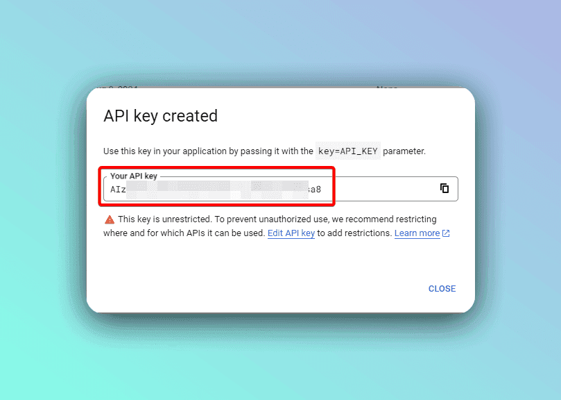 Remember, the API key is a crucial component of your application's security. Treat it with the same level of caution as you would a password. Regularly monitor your API usage in the Google Cloud Console to detect any unusual activity.