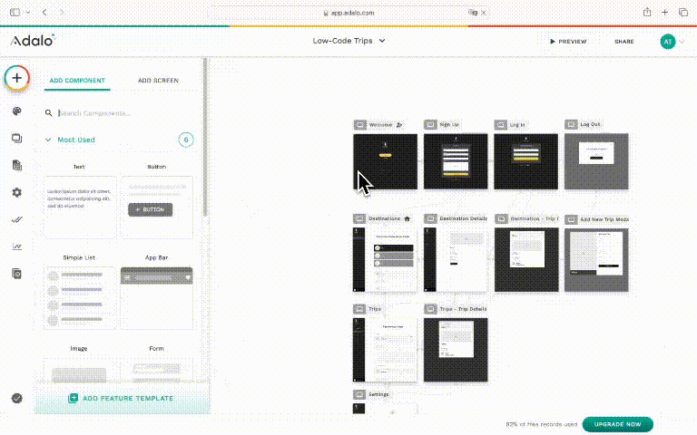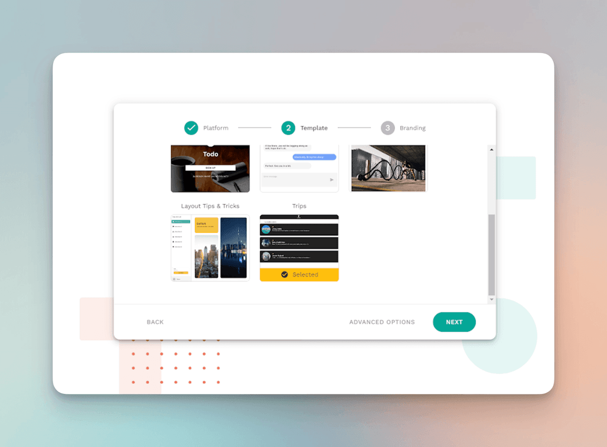 So, first, we sign up in Adalo. Right after that, we are offered to use templates. Let’s pick one. Trips, maybe? Everyone likes trips!