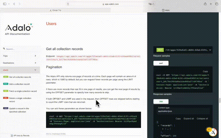 Here we have a database of yet fake users. To be able to interact with it outside Adalo, click on the API documentation icon.