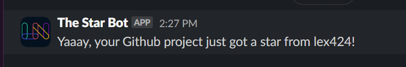 That’s it! Now you’ll get a Slack notification for every new star your GitHub repository receives.