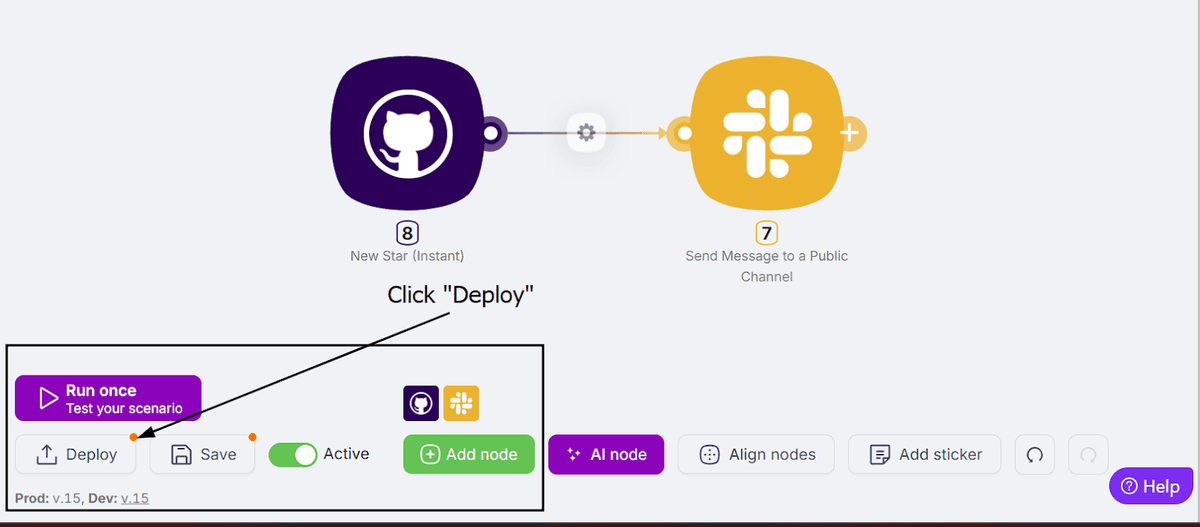 Follow along with these simple steps to connect GitHub and Slack in Latenode: