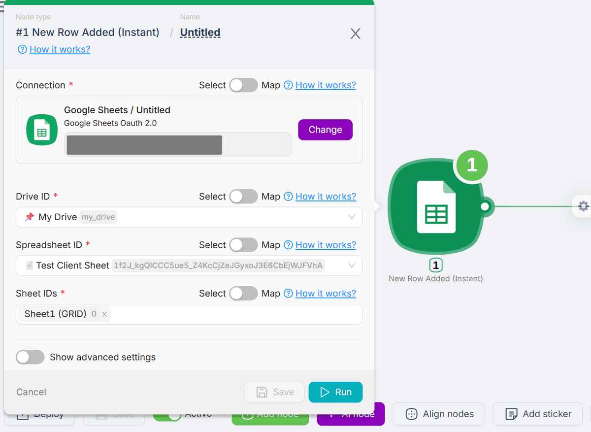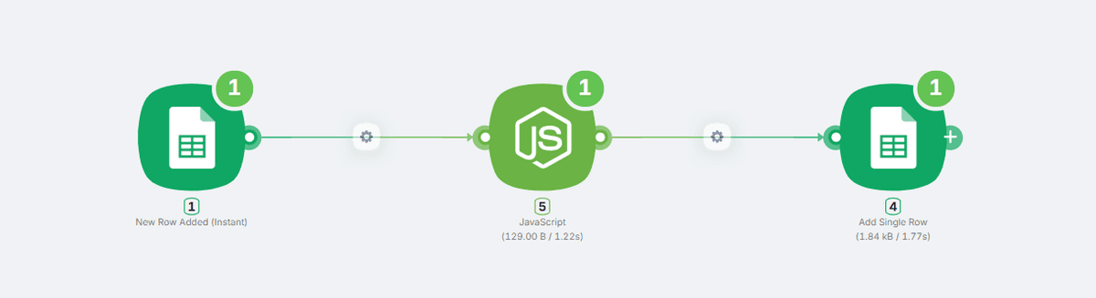 Note: The Google Sheets “New Row” trigger checks for updates every 5 minutes, not instantly. If nothing happens right away, give it a little time.