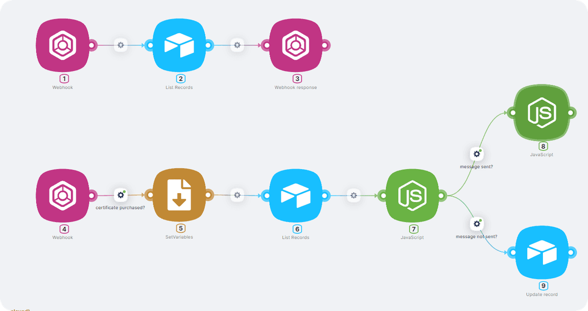 I typically use a Webhook tool, followed by a database tool, and finally a Webhook-response tool. Here are some examples of what I've done: