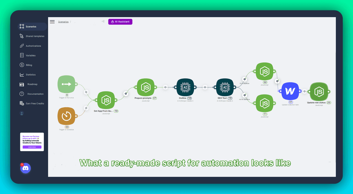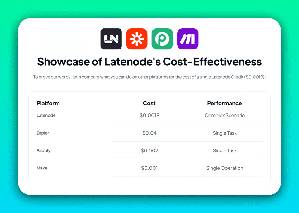 - Flexibility and Scalability: Latenode's low-code environment provides the flexibility needed for complex applications. Users can start with simple automations and gradually add more sophisticated features as their needs grow.