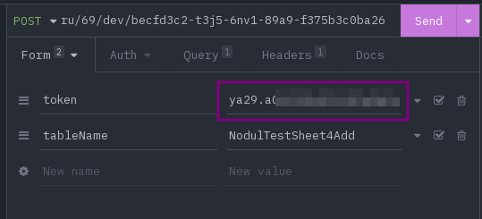 Let's add the "Autorization" header and the "bToken" variable from "JavaScript" to its value;