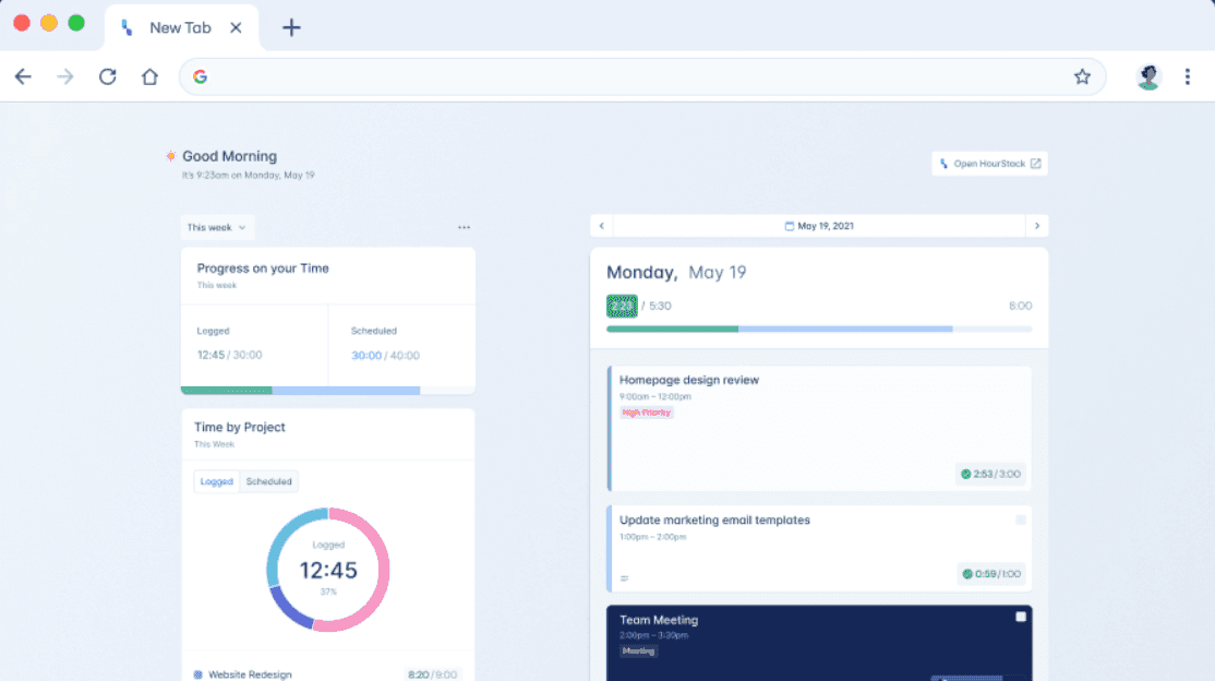 Every person works differently. The best calendar apps adapt to this by offering robust customization options. Tailor your experience by setting up personalized blocks of time in your calendar that align with how you work best. In calendar apps like HourStack, you can adjust colors, tags, and even block lengths to reflect your priorities.