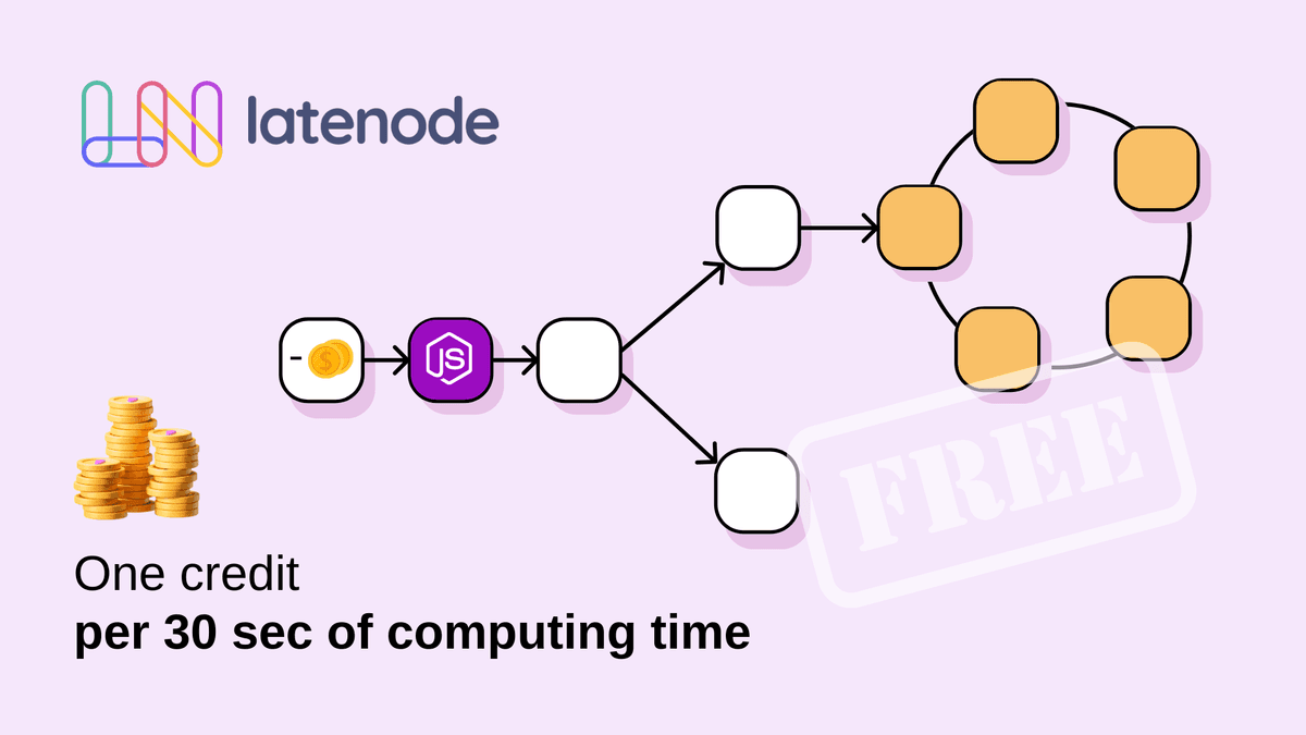 Speaking about Latenode, it has the same pricing model as Pipedream – one credit equals 30 seconds of computing time.
