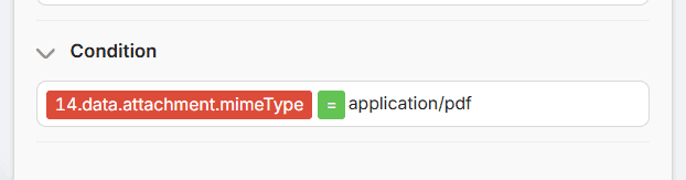 The PDF filtering is needed to ensure only relevant documents enter the scenario. To do it, we need to use a simple command with variables: