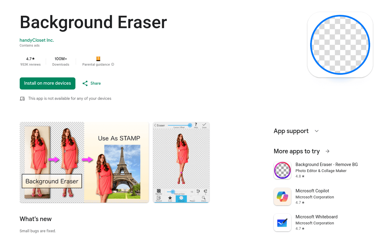 | Borrador de fondo | Ligero, admite exportaciones PNG transparentes | Se necesita edición manual para obtener mejores resultados |