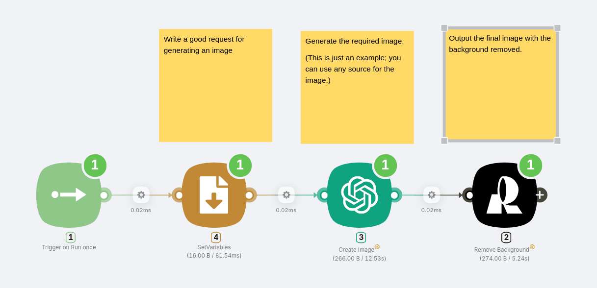 - Precisión impulsada por IA: A diferencia de las herramientas tradicionales que luchan con los detalles intrincados, el removedor de Recraft en Latenode detecta los bordes sin esfuerzo, lo que garantiza extracciones de alta calidad.