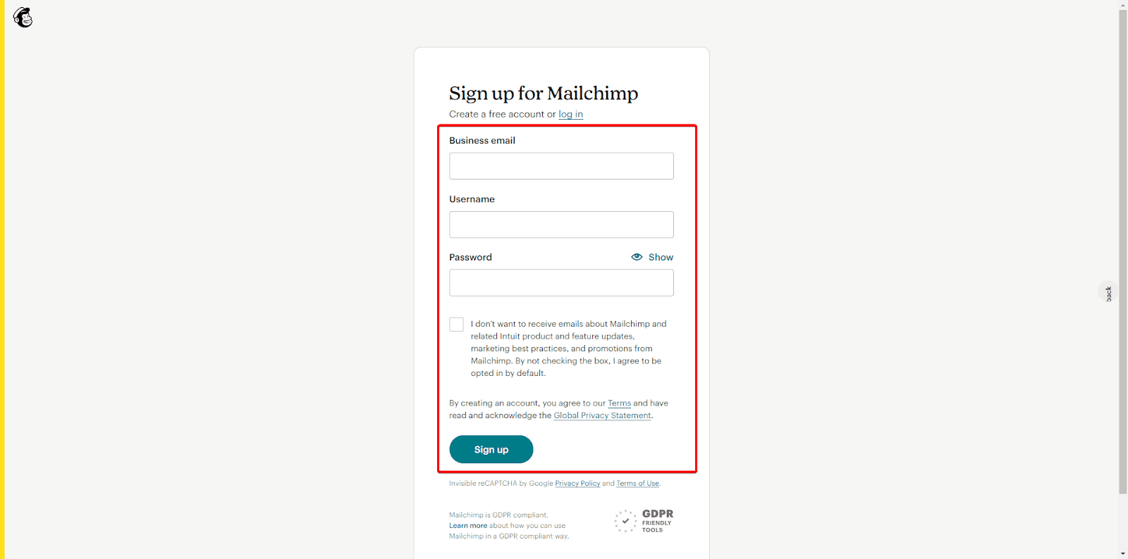 - Inicie sesión en su cuenta de Mailchimp con sus credenciales.