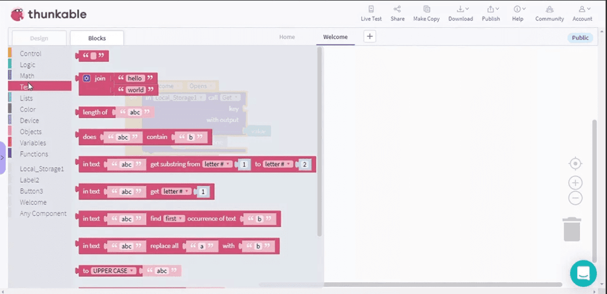 Plataformas como Thunkable ofrece un lienzo donde puede ensamblar visualmente sus aplicaciones móviles, mejorando la capacidad de interfaz y creando aplicaciones web progresivas. Usted selecciona componentes con capacidad de interfaz y los organiza para diseñar su interfaz de usuario para aplicaciones móviles, lo que hace que la creación de aplicaciones en cualquier plataforma de código, incluidas las aplicaciones web progresivas, sea accesible para todos.