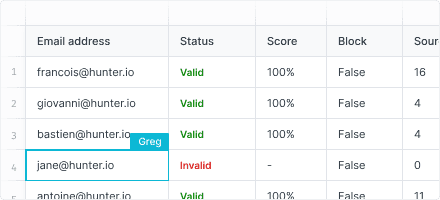 Vérificateur d'email Hunter.io en pratique. L'image est tirée du produit page Web.