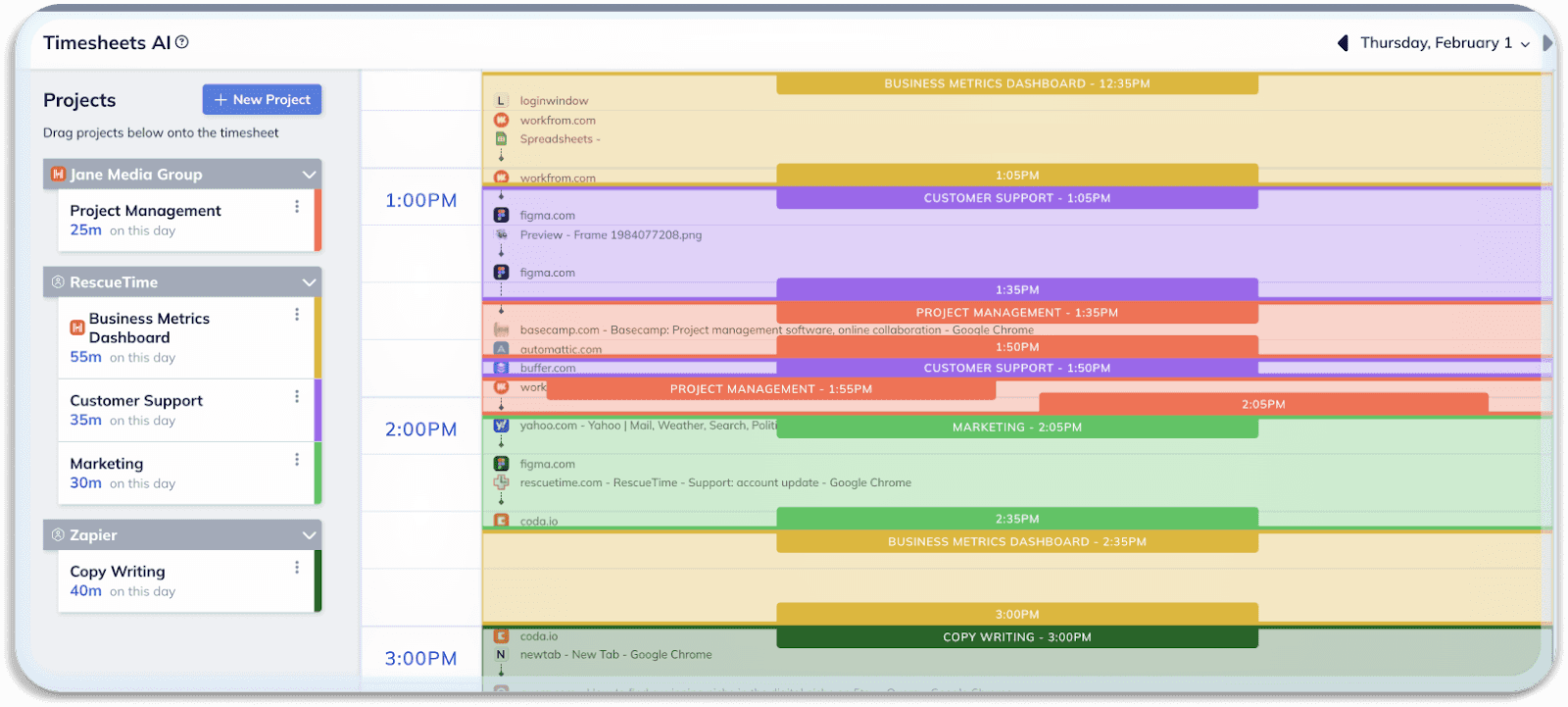- Suivi automatique du temps alimenté par l'IA