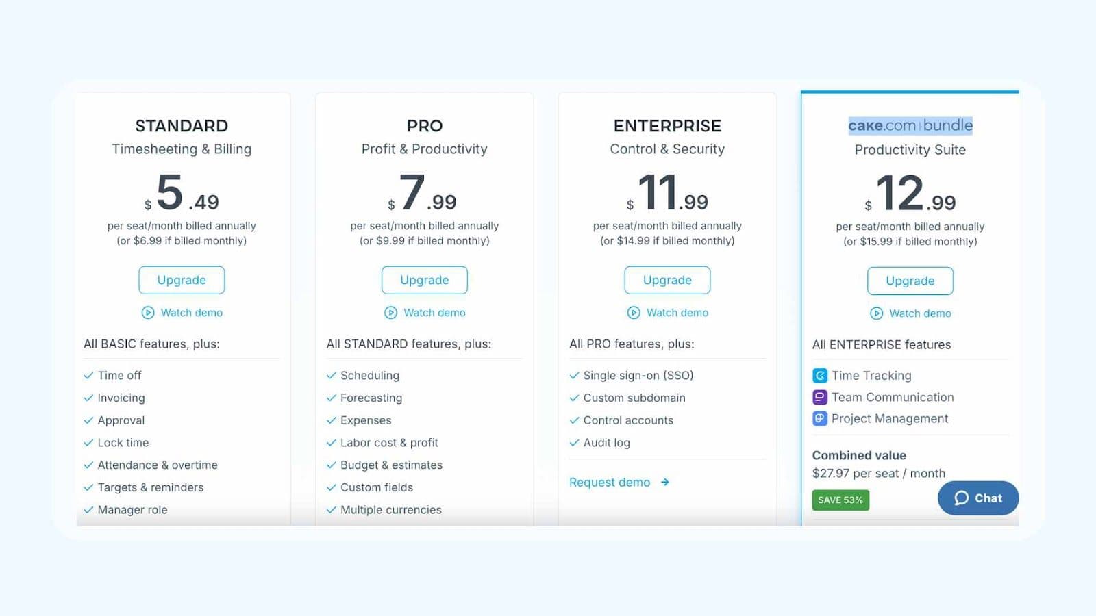 - Plan gratuit:Disponible pour jusqu'à 5 utilisateurs avec des fonctionnalités de base de suivi du temps et de création de rapports