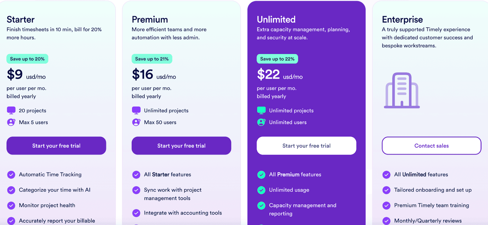 Timely est idéal pour les entreprises et les équipes à la recherche d'une solution avancée de suivi du temps basée sur l'IA, qui offre également de solides fonctionnalités de gestion de projet et de planification d'équipe. Son suivi automatique et sa belle interface le rendent attrayant pour ceux qui souhaitent investir dans un outil de gestion du temps plus haut de gamme.