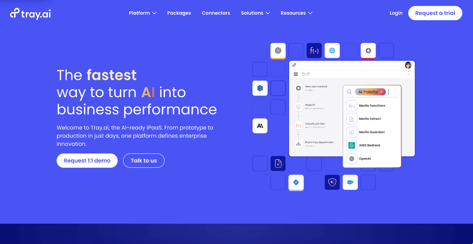 Tray.io é uma plataforma de automação versátil, baseada em nuvem, que combina o poder do iPaaS (Integration Platform as a Service) e do RPA (Robotic Process Automation). Esta ferramenta poderosa capacita os usuários a: